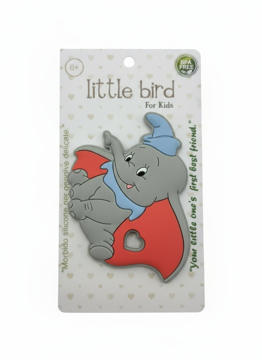 Questo adorabile mordente in silicone a forma di elefantino è perfetto per alleviare il fastidio della dentizione del tuo bambino dai 6 mesi in su! Morbido, sicuro e certificato BPA Free, con un design colorato e divertente che cattura l'attenzione dei più piccoli.