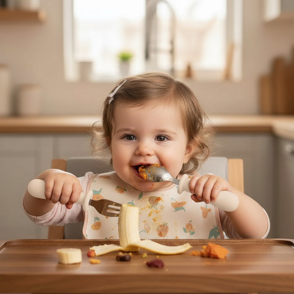 Set Posate Bambini Beige - Forchetta e Cucchiaio
